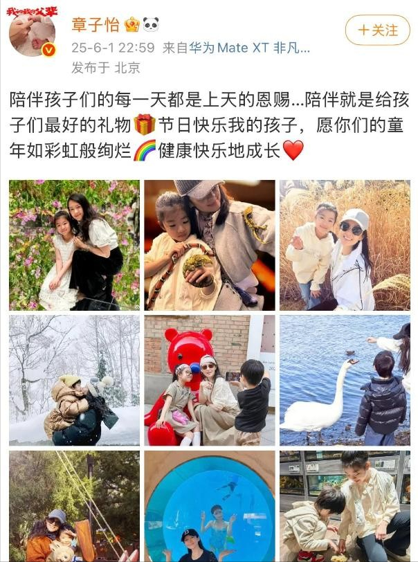 可别以为她只顾着事业,对孩子不管不顾,六一儿童节的时候,她晒过带两个孩子去游乐场的照片,蹲在地上陪孩子喂小动物的样子,和普通母亲没什么两样。